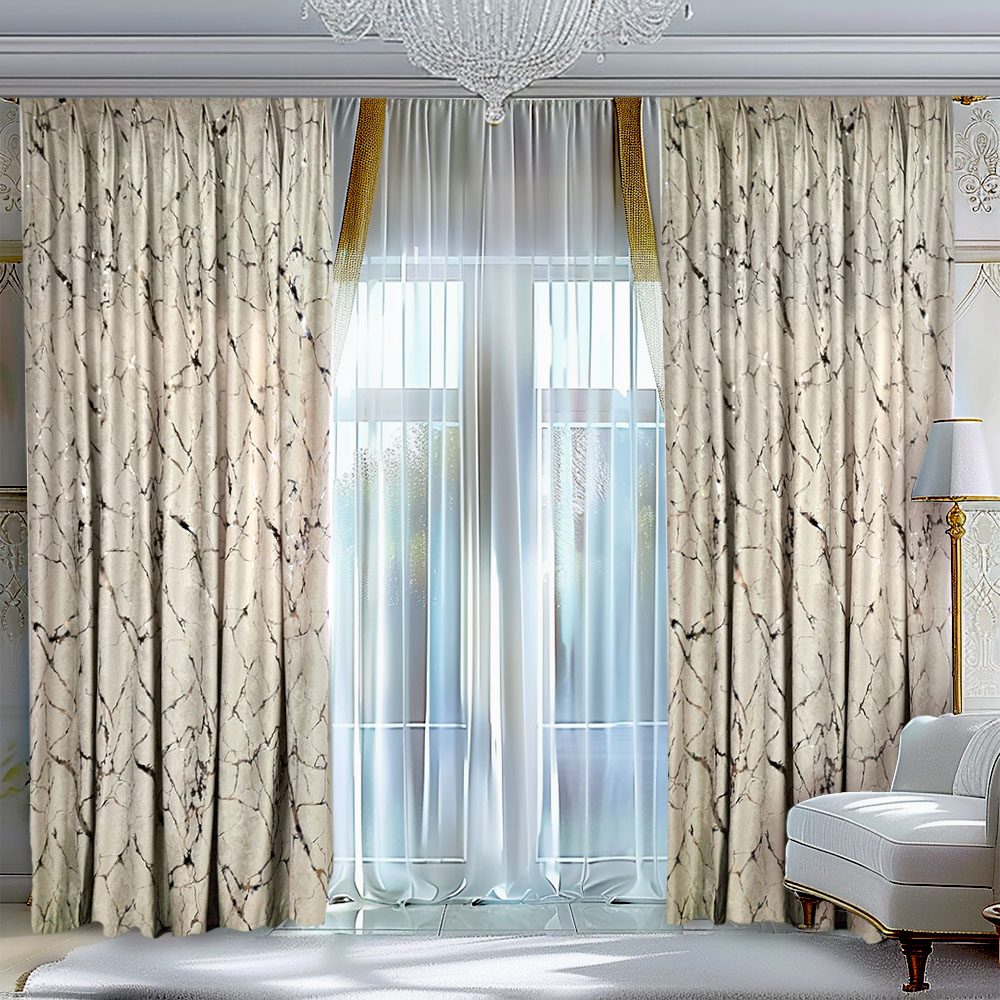 Draperie de Catifea Duo Semi Bej cu Gri Deschis