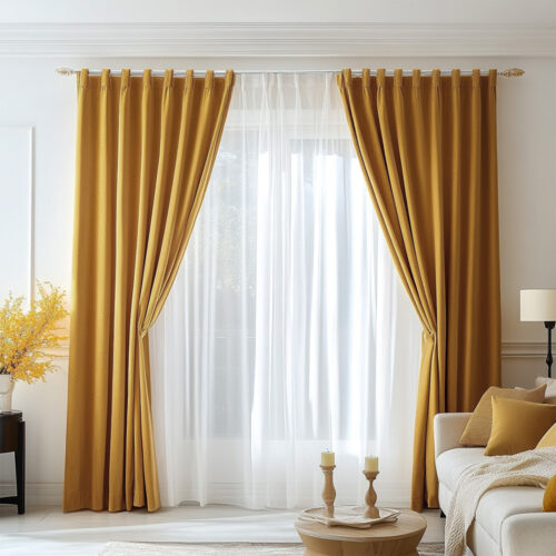 Draperie de Stofa Shine cu textura groasa 90% Blackout Mustar