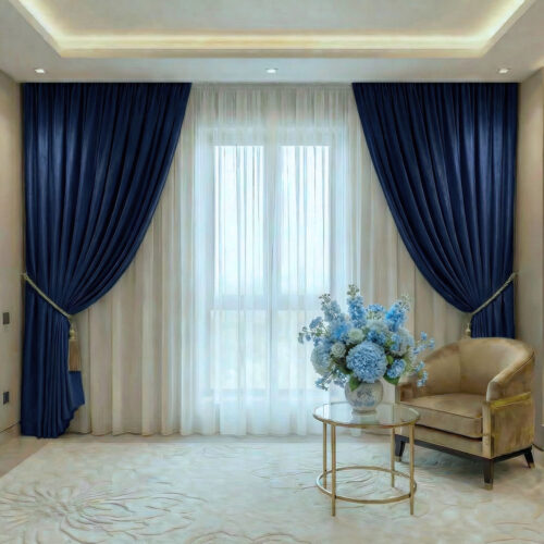 Draperie de Textura Groasa YEMEN 80% Blackout Albastru
