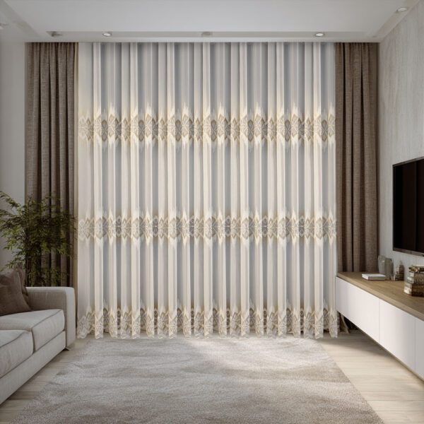Perdea Brodată Prețioasă Crem-Auriu Asia