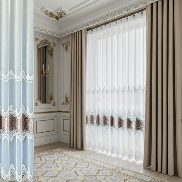 Perdea Adele cu Broderie si Catifea Alba /Maro