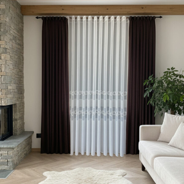 Perdea din In cu Broderie Alb/Maro BRD6318/44-11