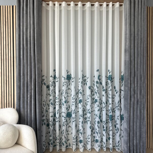Perdea cu Flori/Trandafiri Turcoaz