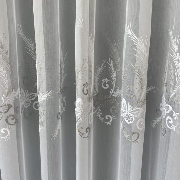 Perdea din Bambus Albă cu Gri cu Broderie Luxury Butterfly