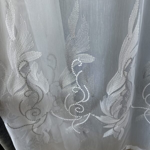 Perdea din Bambus Albă cu Gri Broderie Luxury Tip Pană