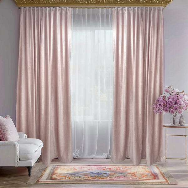 Prețul inițial a fost: 270,00 lei.108,00 leiPrețul curent este: 108,00 lei.Draperie de Catifea Semi-Opaca 70% Roz Pudra L3m/H2m cu Rejansă de Bară