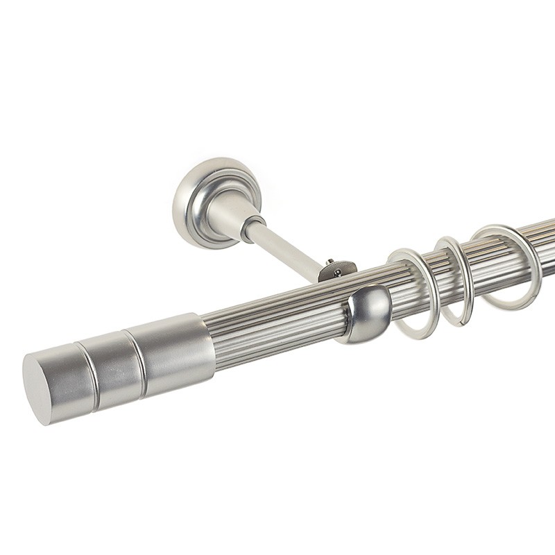 Cylinder – Set complet galerie metalica simpla, teava striata, culoare Crom Mat, diametrul tevii 25mm, inele teflonate cu carlige pvc