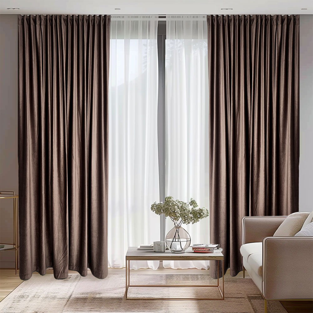 Draperie de Catifea Blackout 70% Maro L 5m/H 2.40 m cu Rejansa de 6cm.
