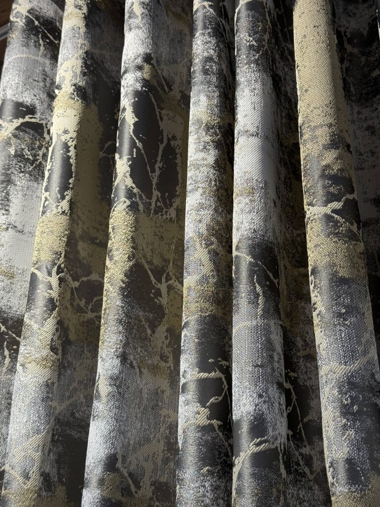 Draperie Elegantă Gri Deschis cu Imprimeu Oglindă Spartă L2.40m/H2.30m cu Rejansă Bară. L2.40m impartit in doua bucati.