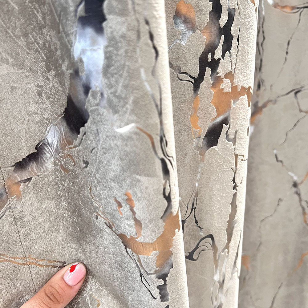 Draperiile de catifea cu insertii metalice, textura fluida, gata cusuta cu rejansa de 10 cm, placute la atingere, ce nu formeaza cute, opresc patrunderea luminii solare si au rol termic de a izola fata de temperaturile scazute din anotimpul rece cat si fata de canicula.