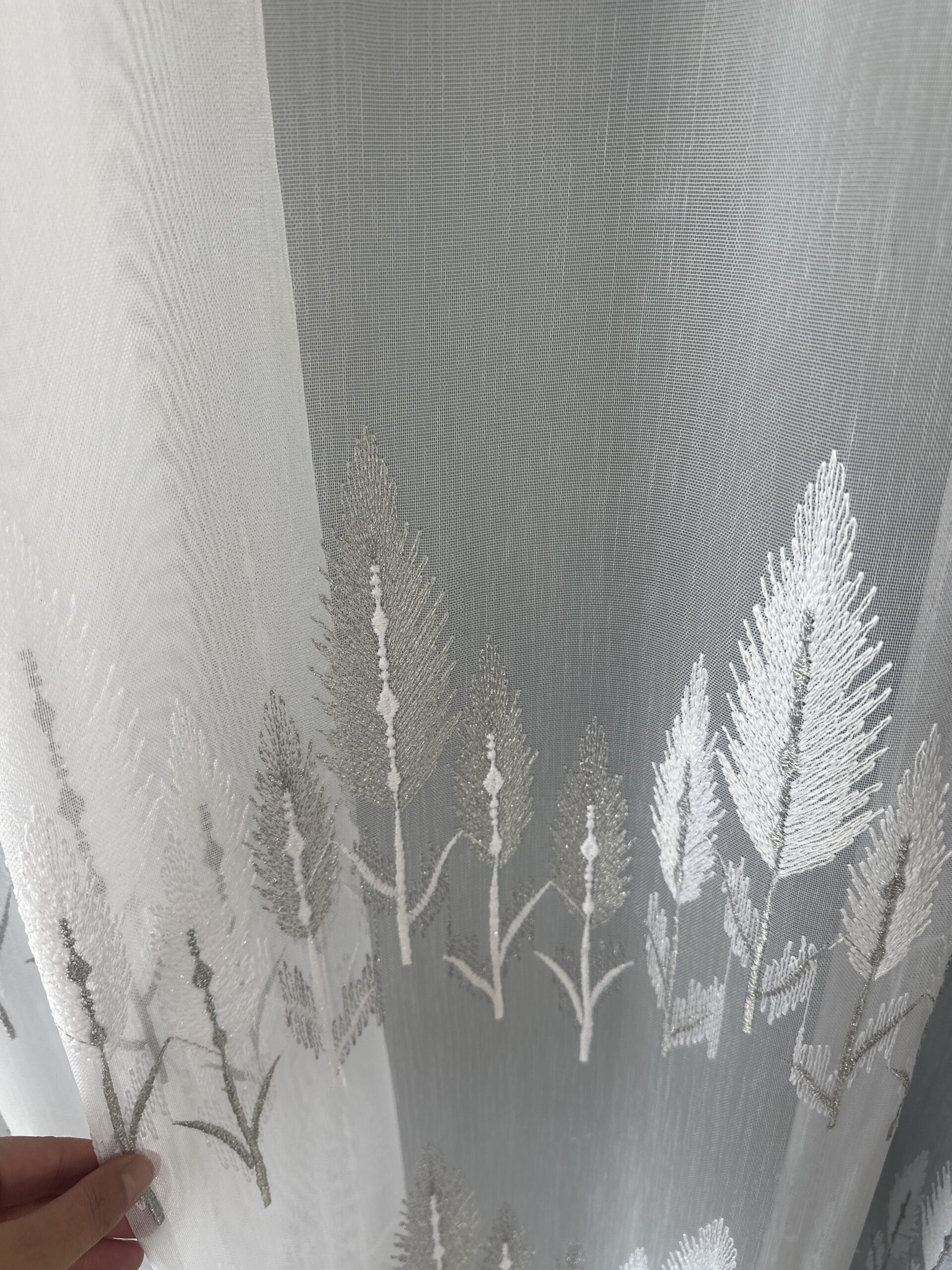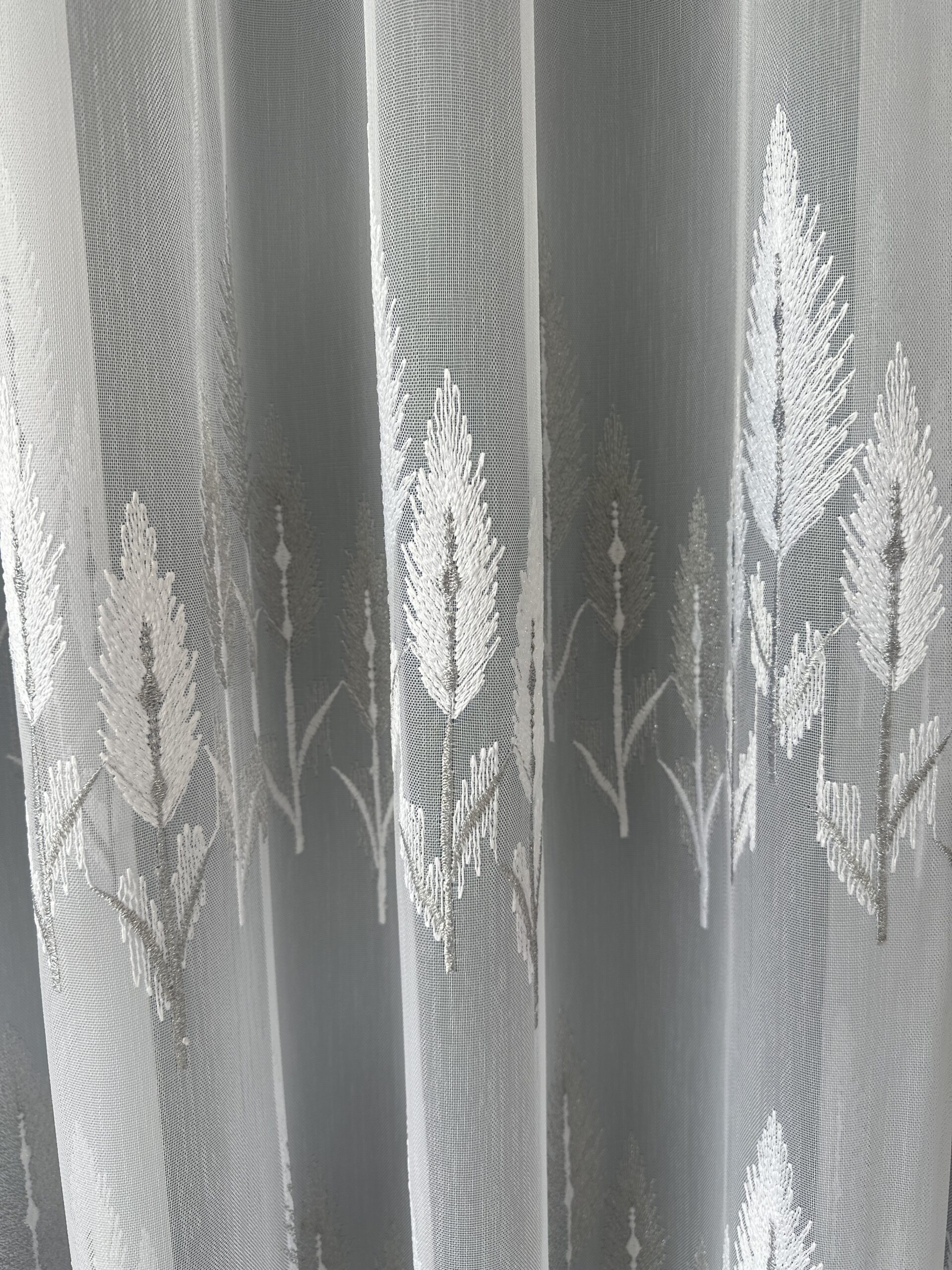 Perdea Bambus Brodat Model Copac – Crem/Gri