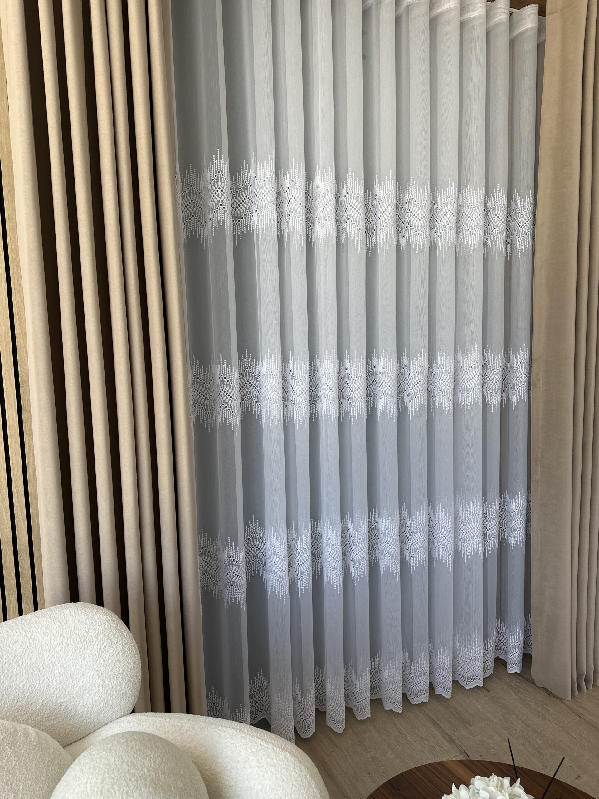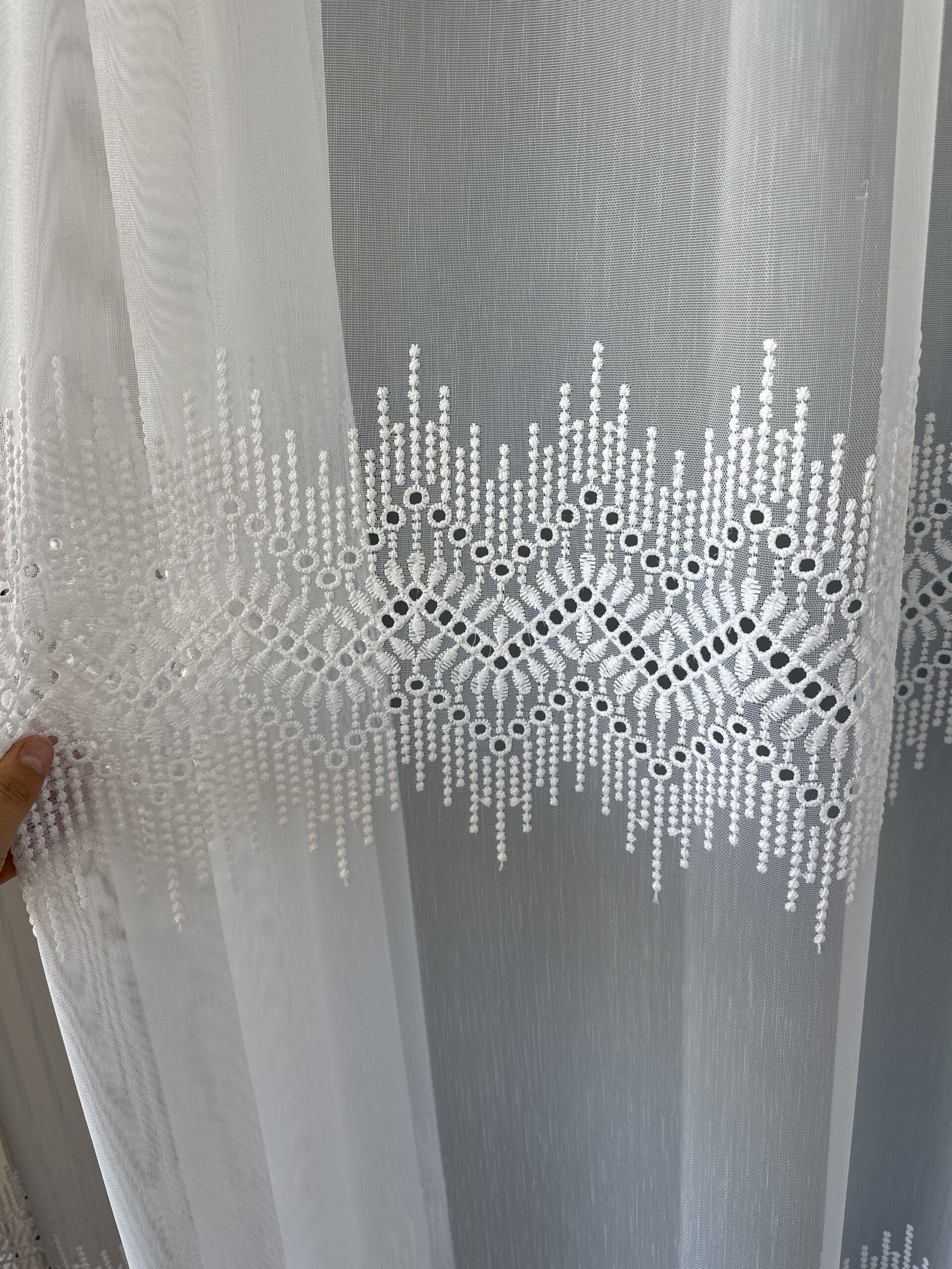 Fii primul care scrii o recenzie pentru „Perdea Bambus Brodat Model Geometric – Alb”