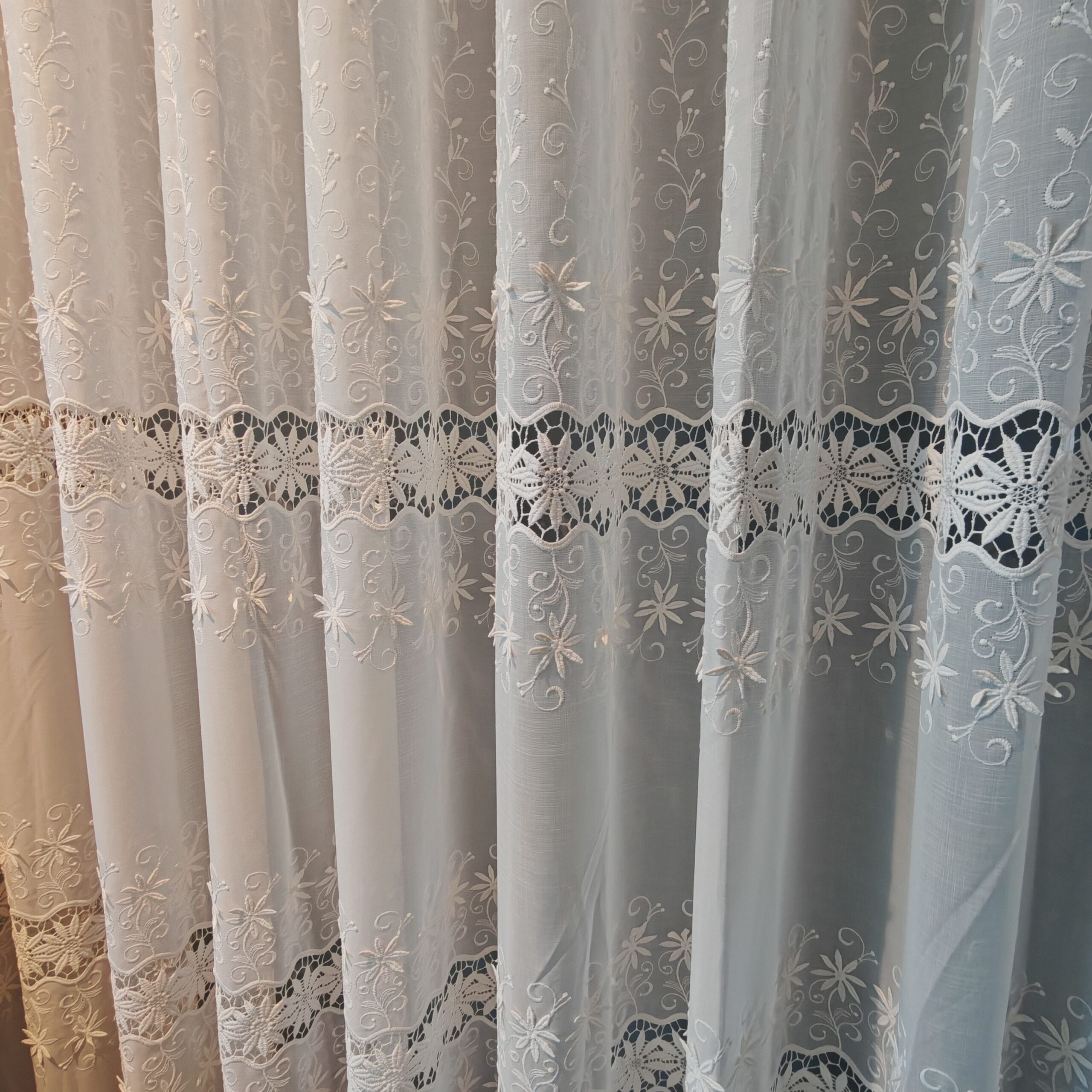 Perdea Ilara din In cu Broderie Florală Albă