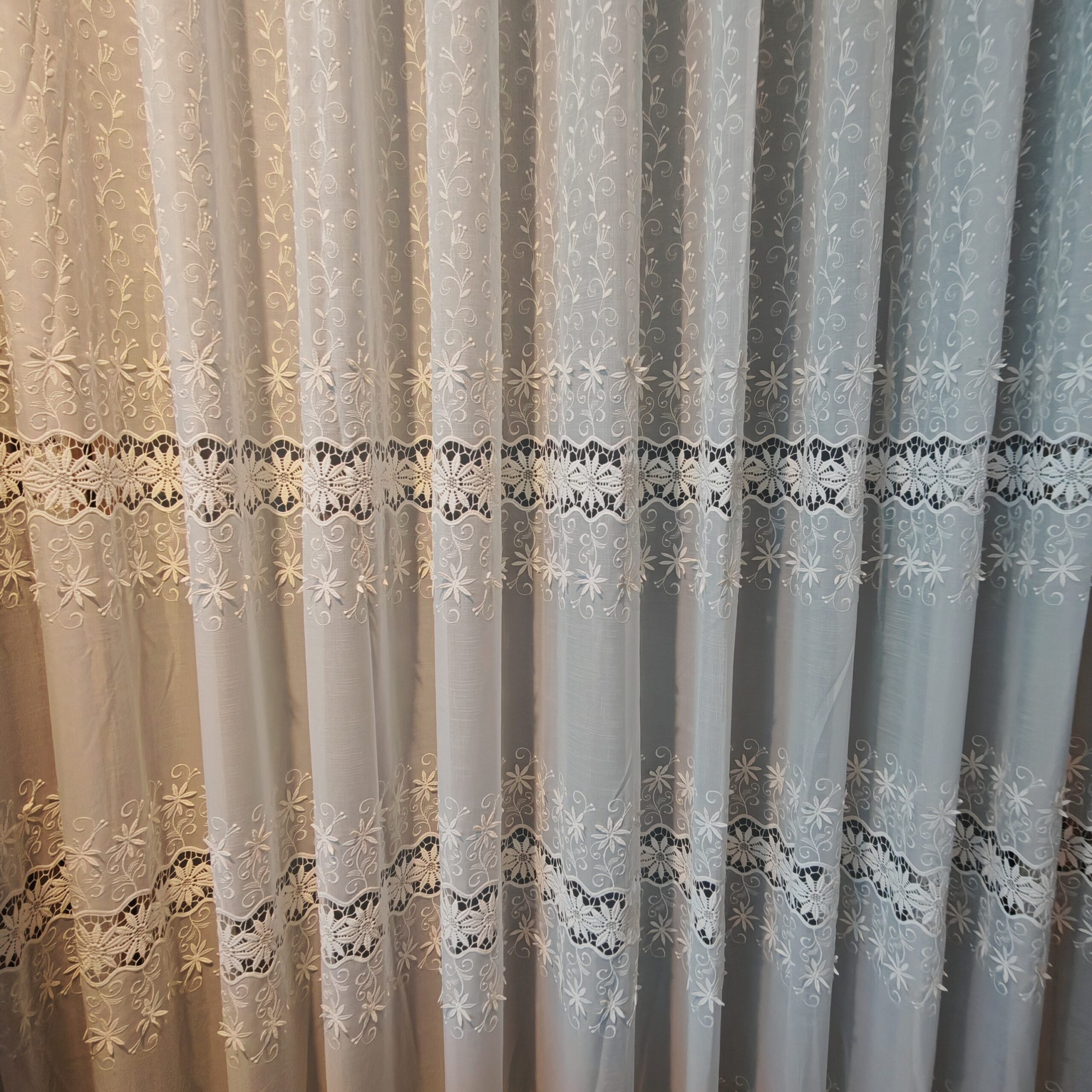 Tesatura de tip plasa permite luminii naturale sa intre in interior, pentru un efect stralucitor si incantator. Perdeaua va da senzatia unei incaperi mai inalte, daca se opteaza oentru o lungime pana la nivelul podelei.