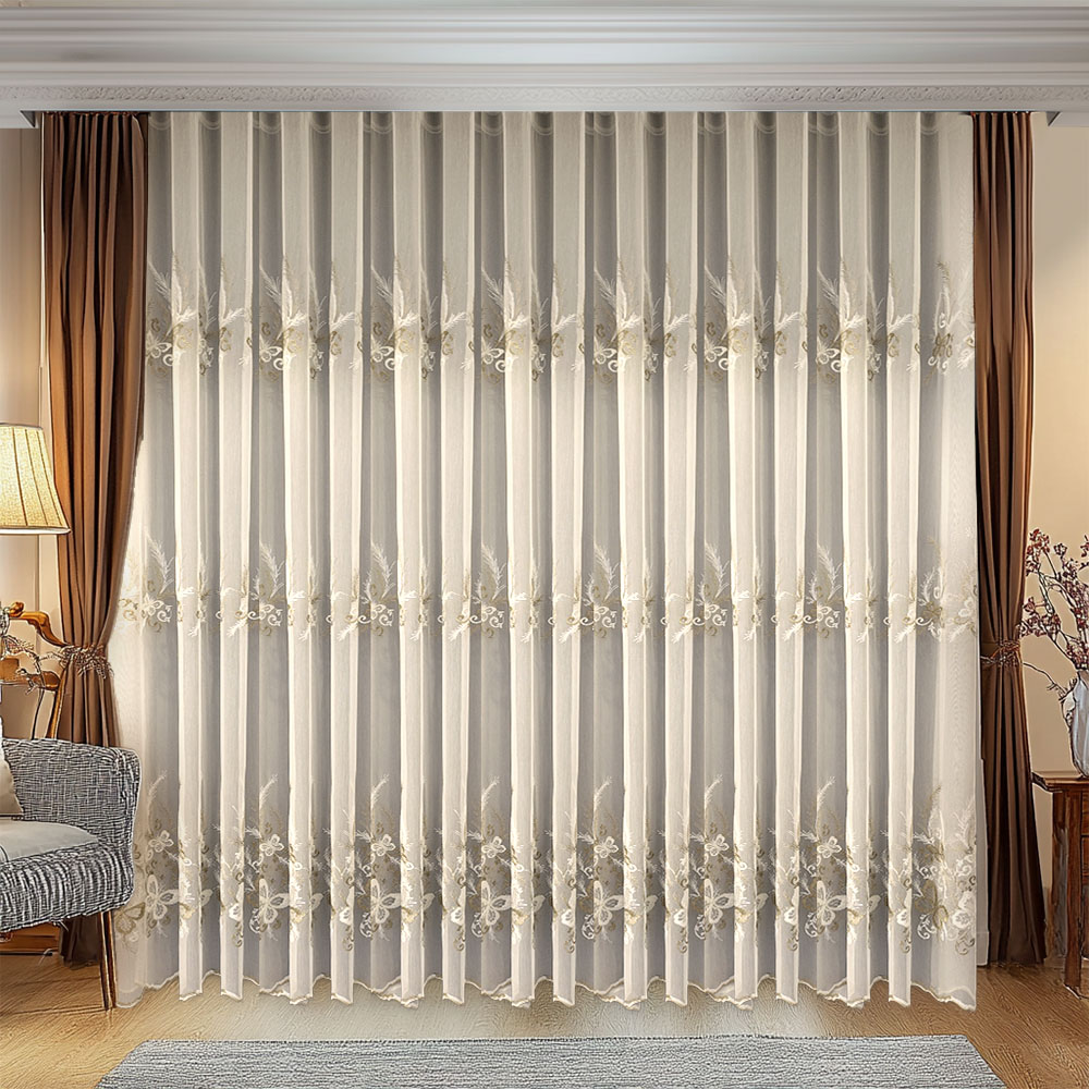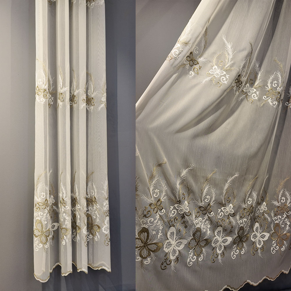 Perdea Casia cu Broderie Rafinata Crem-Auriu L3m/H2.50m cu Rejansă de 6cm