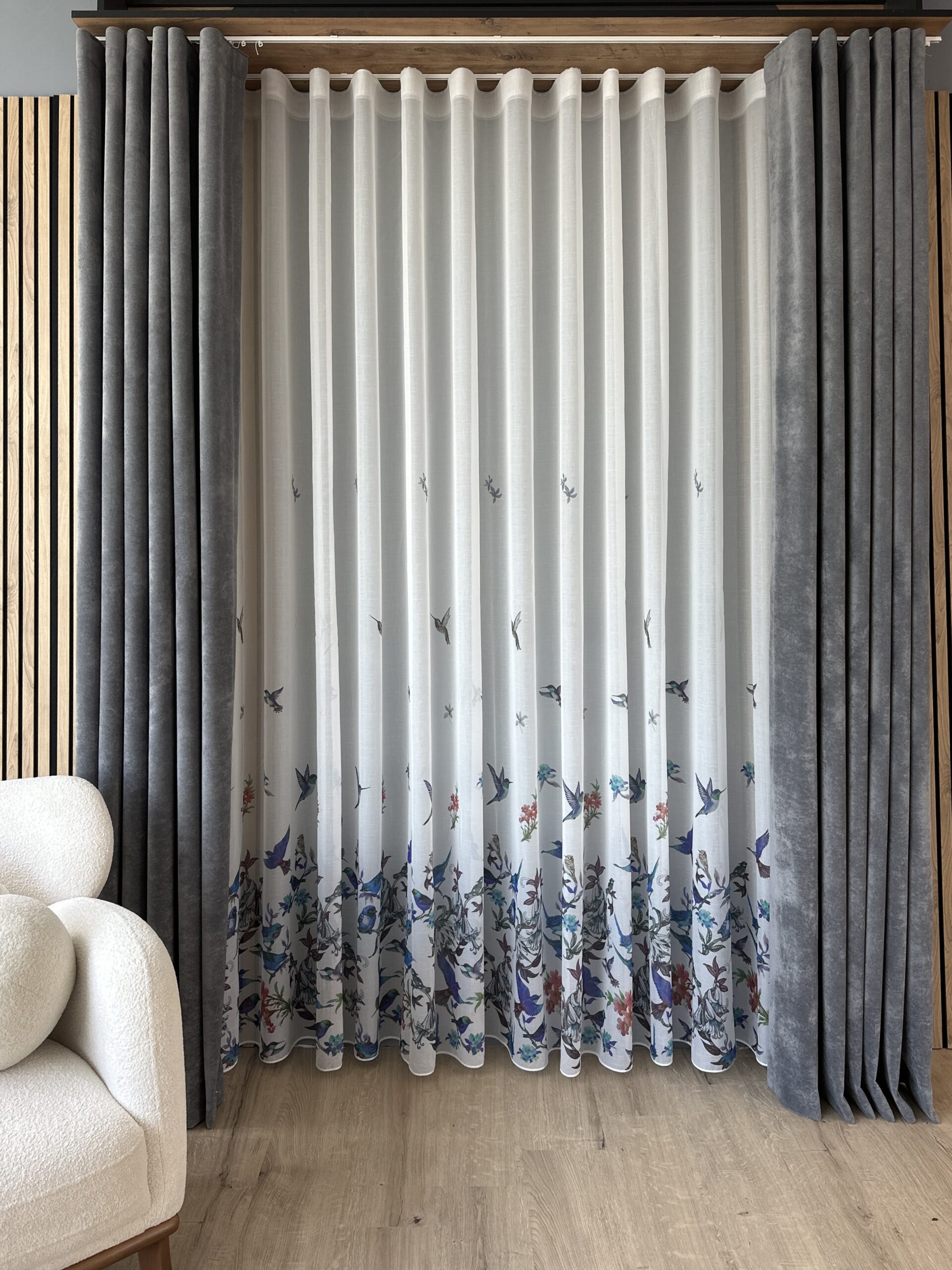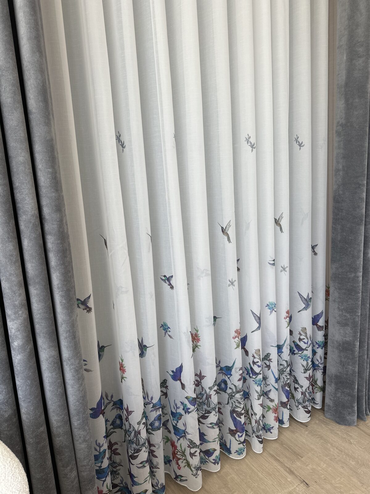 Perdea cu Păsări Colarate Albastre 1702