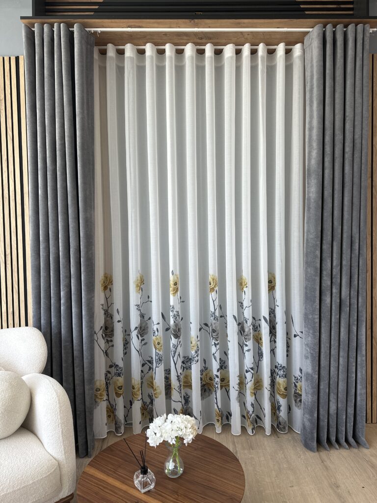 Tesatura de tip voal cu textura de in permite luminii naturale sa intre in interior, pentru un efect stralucitor si incantator. Perdeaua va da senzatia unei incaperi mai inalte, daca se opteaza pentru o lungime pana la nivelul podelei.