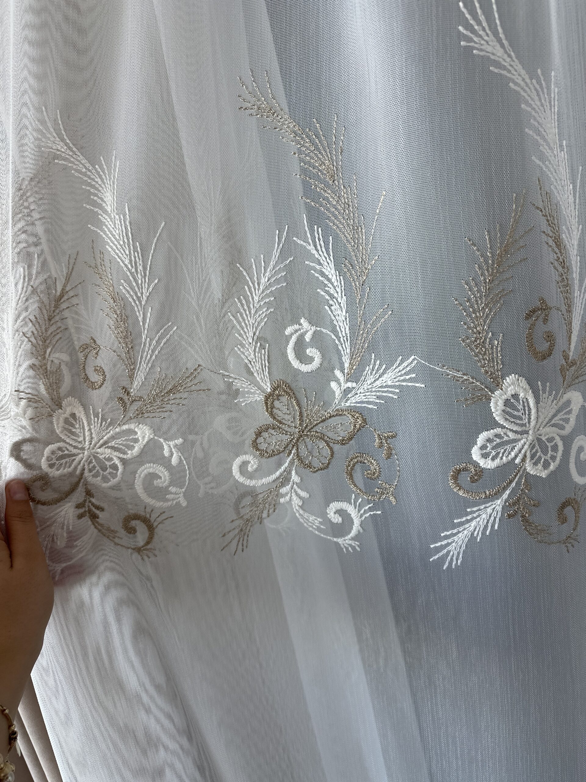 Perdea din Bambus Crem-Maro cu Broderie Luxury Butterfly