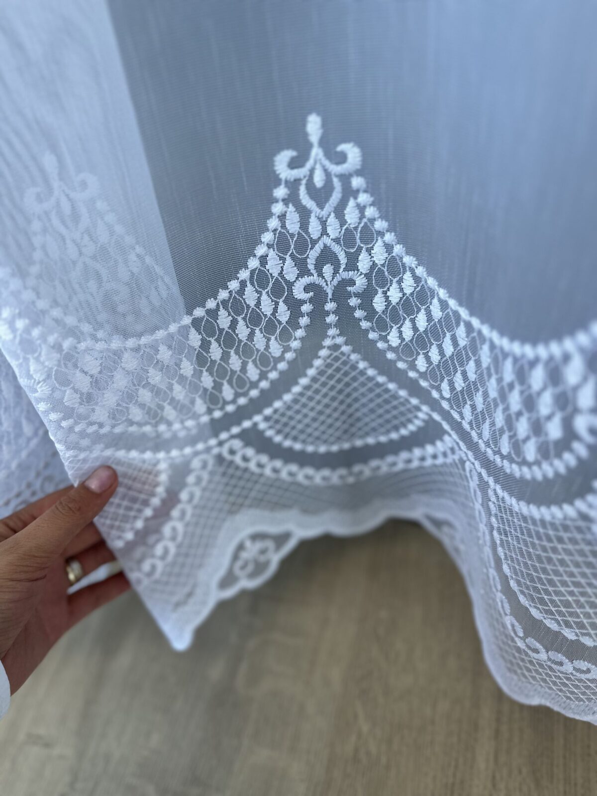 Perdea din Bambus cu Broderie Fina Alba 24PO273 L4,90m/ H2,55m cu rejansă Wave