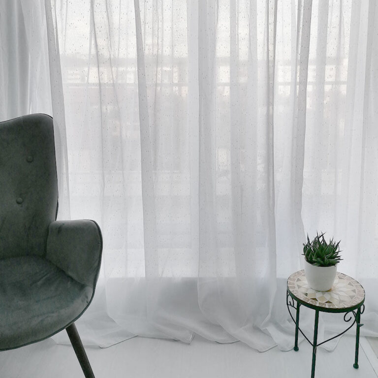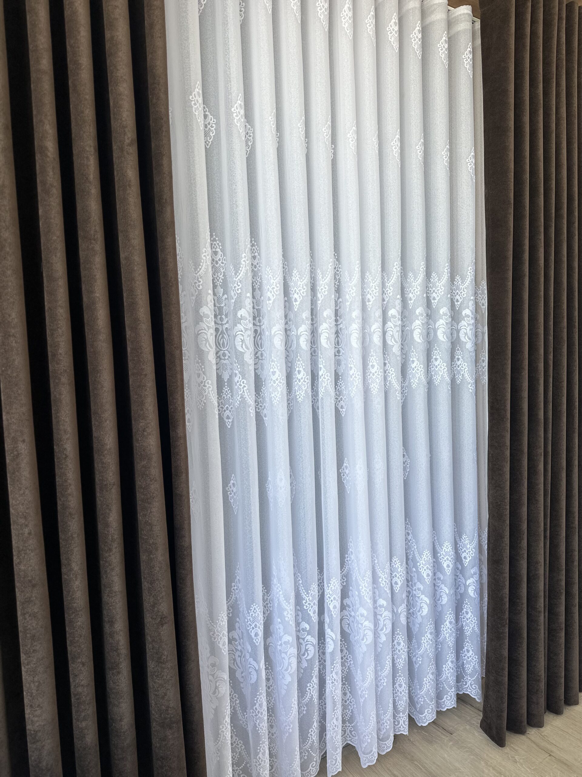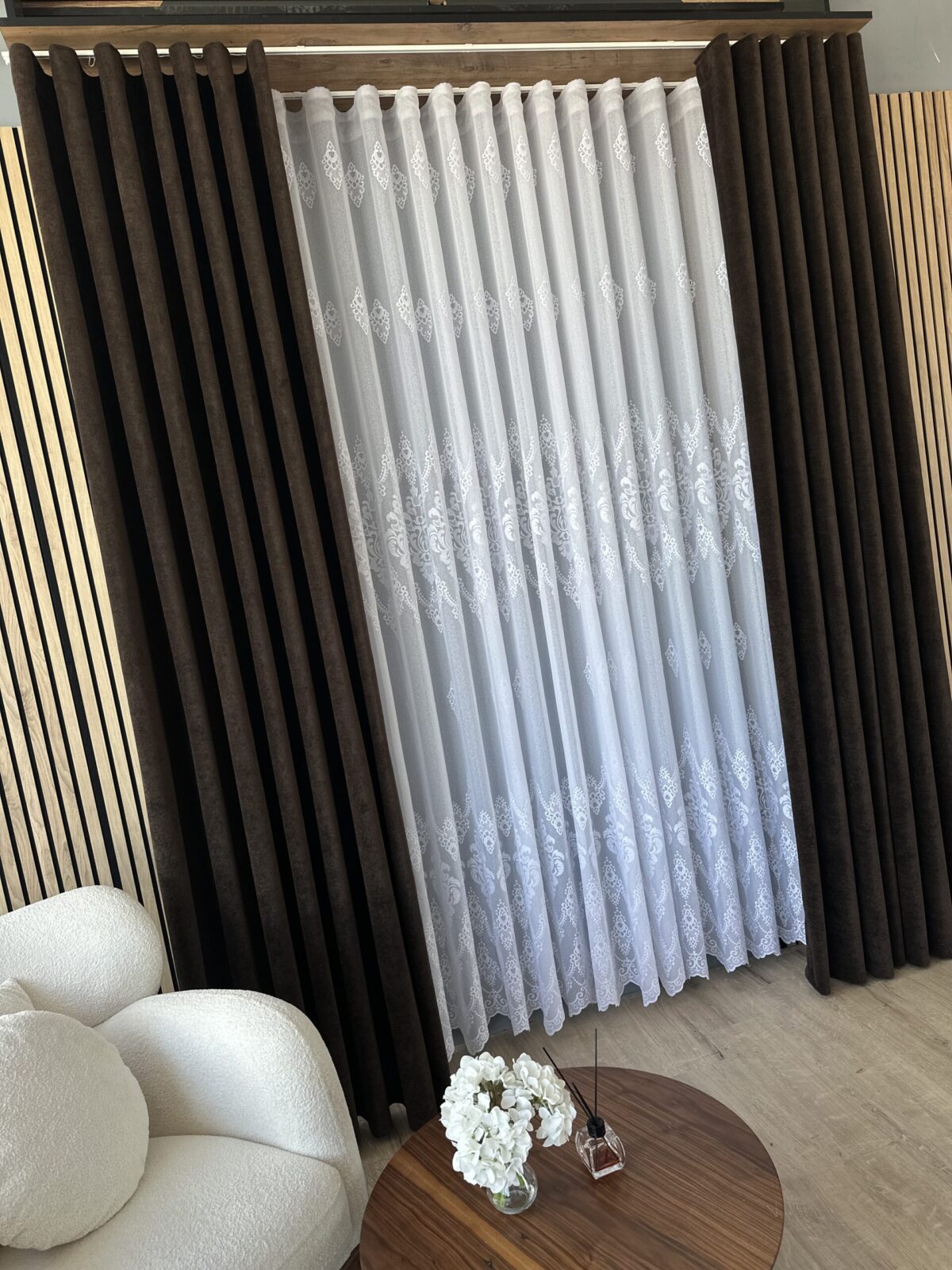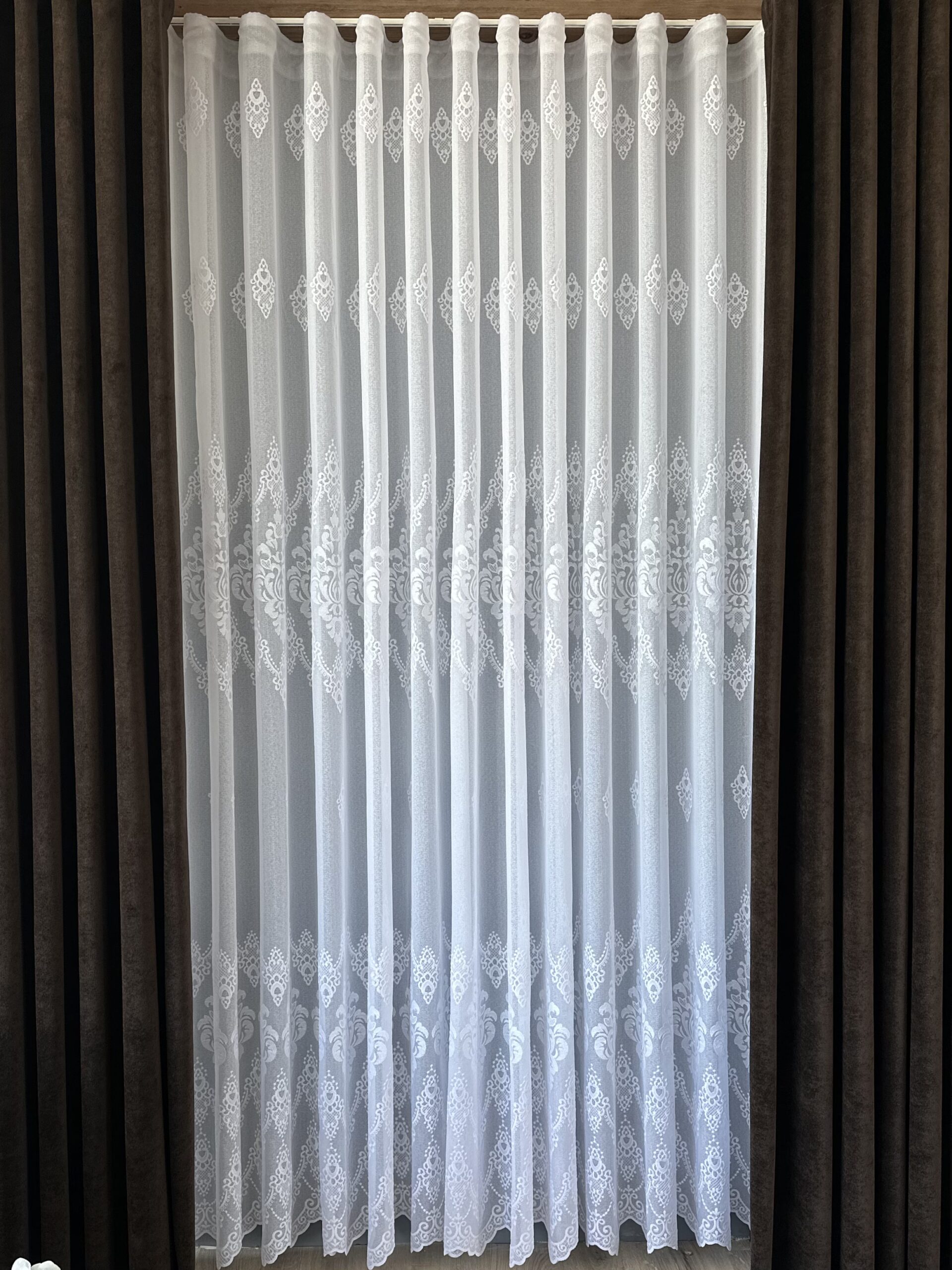 Perdea din In cu Broderie Eleganta Alba 24317 L4,90m/ H2,55m cu rejansă Wave