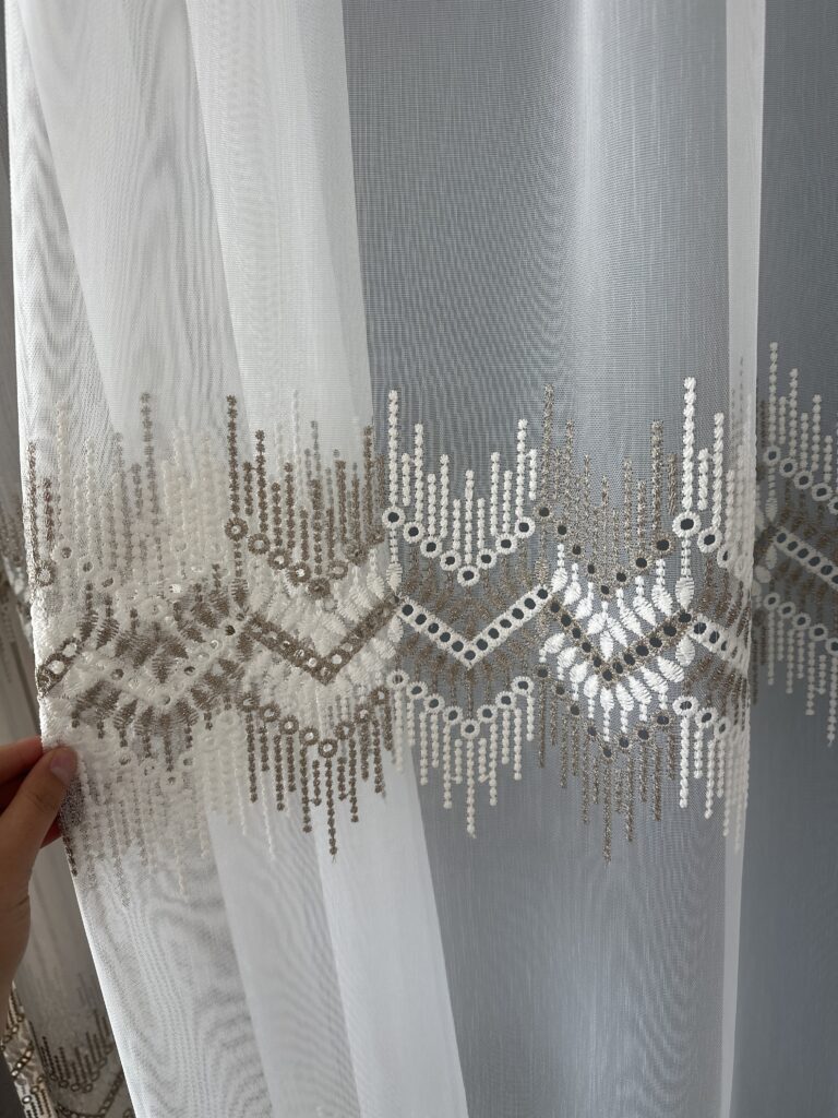 Perdea din In Gros Alb cu Broderie Elegantă Jos L2.5m/H2.70m cu Rejansă de 6cm