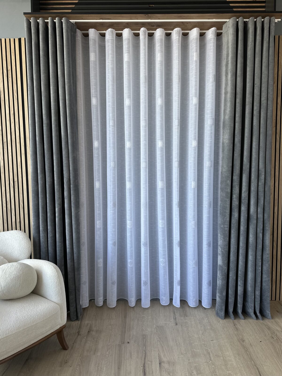 Perdea din In Puncte Albe L7m/H2,52m cu Rejansă de 6cm