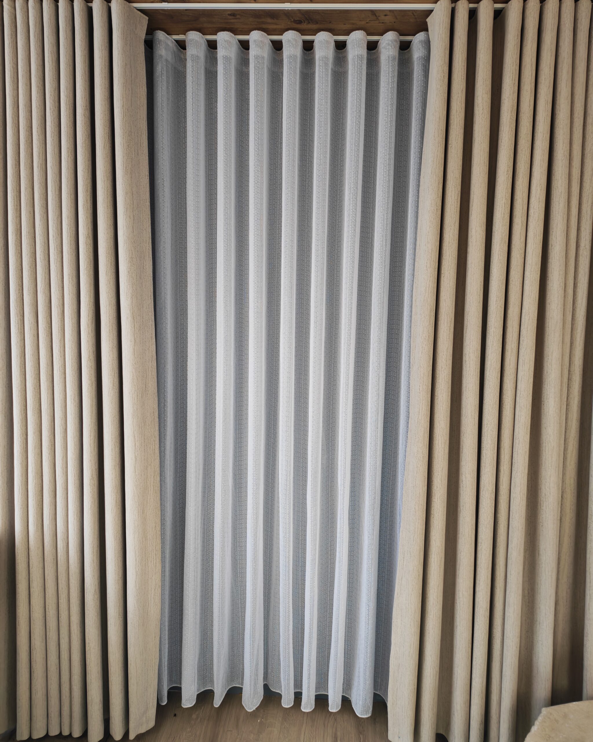 Tesatura de tip voal cu textura de in permite luminii naturale sa intre in interior, pentru un efect stralucitor si incantator. Perdeaua va da senzatia unei incaperi mai inalte, daca se opteaza pentru o lungime pana la nivelul podelei.