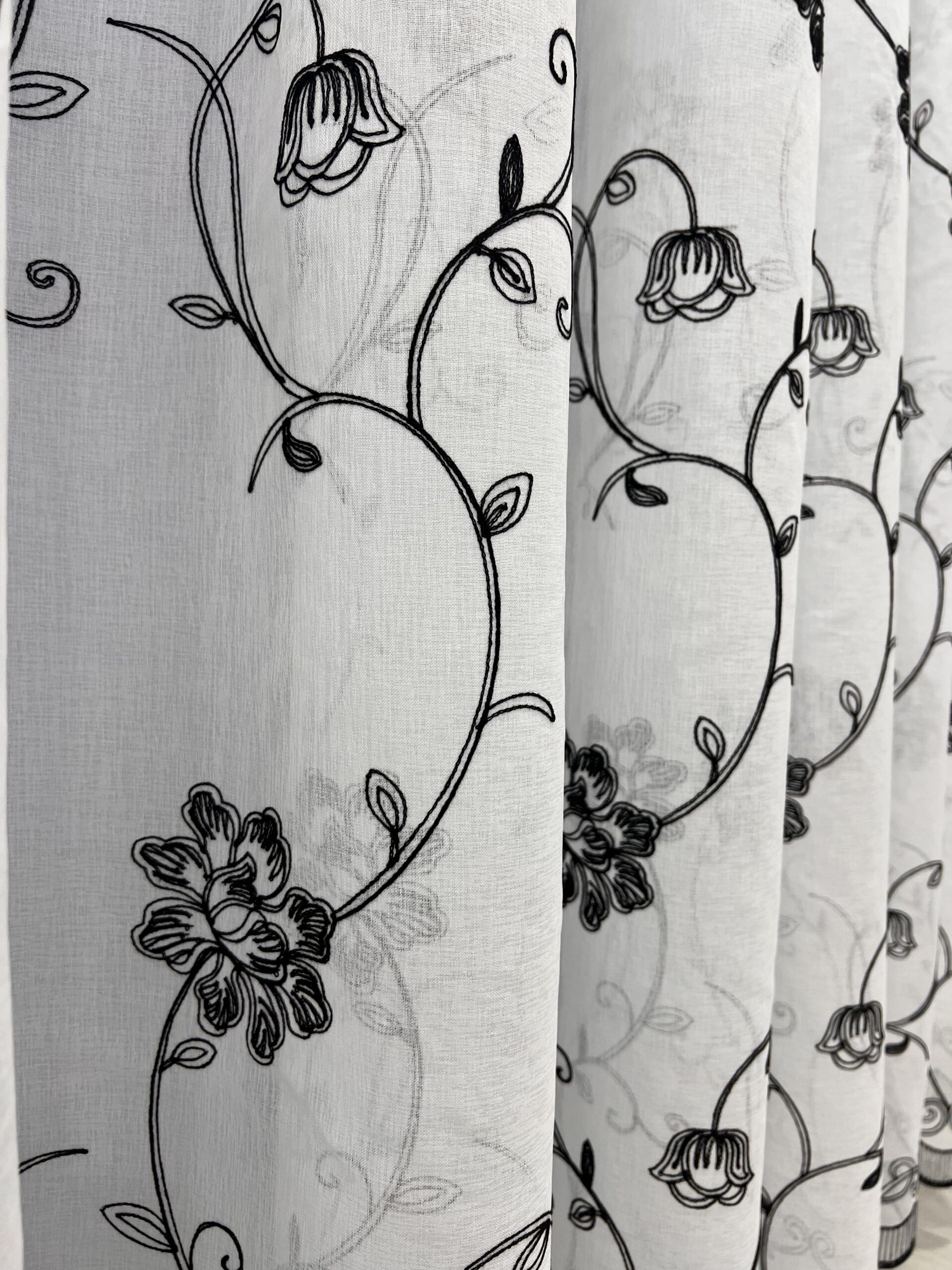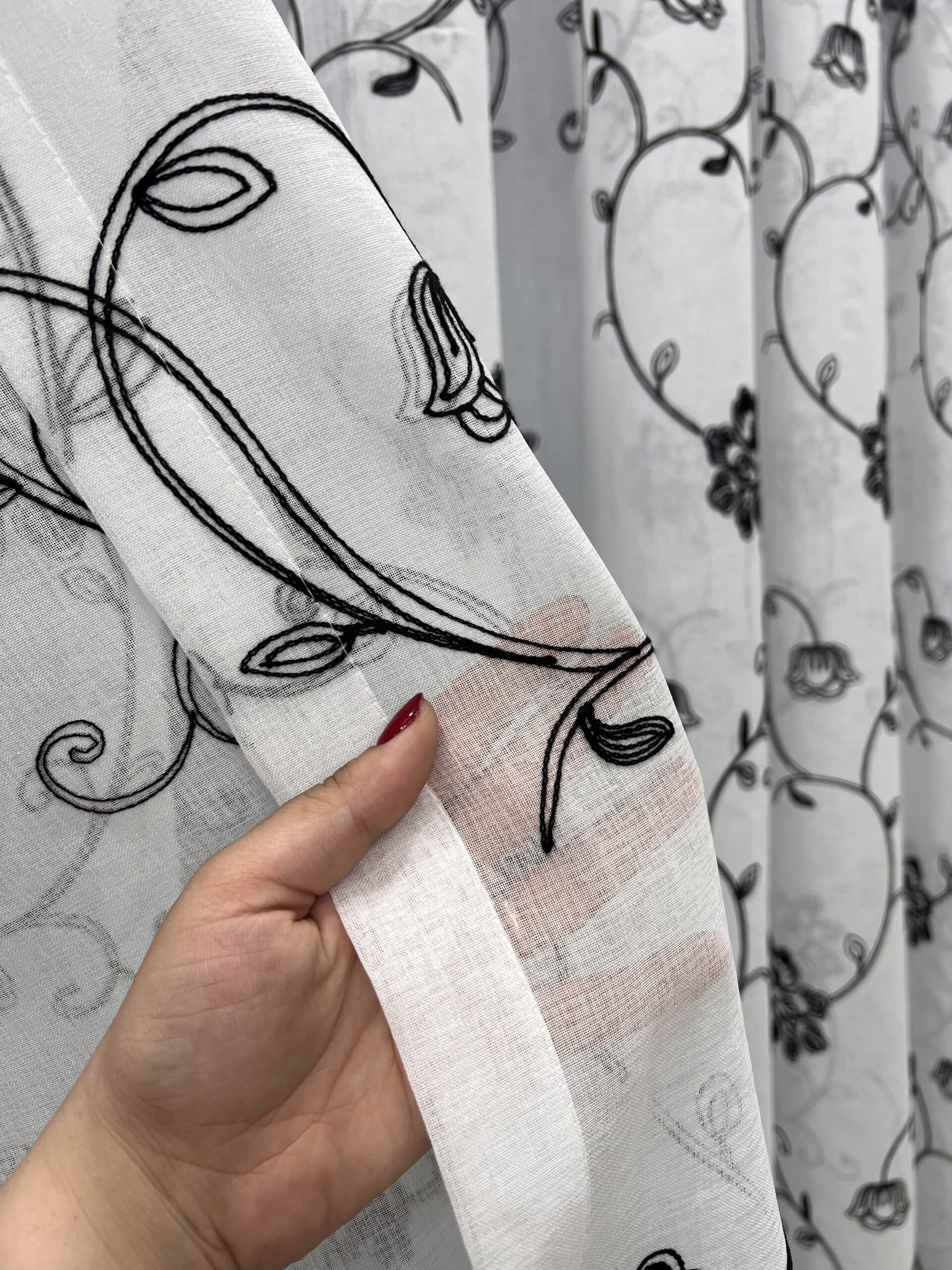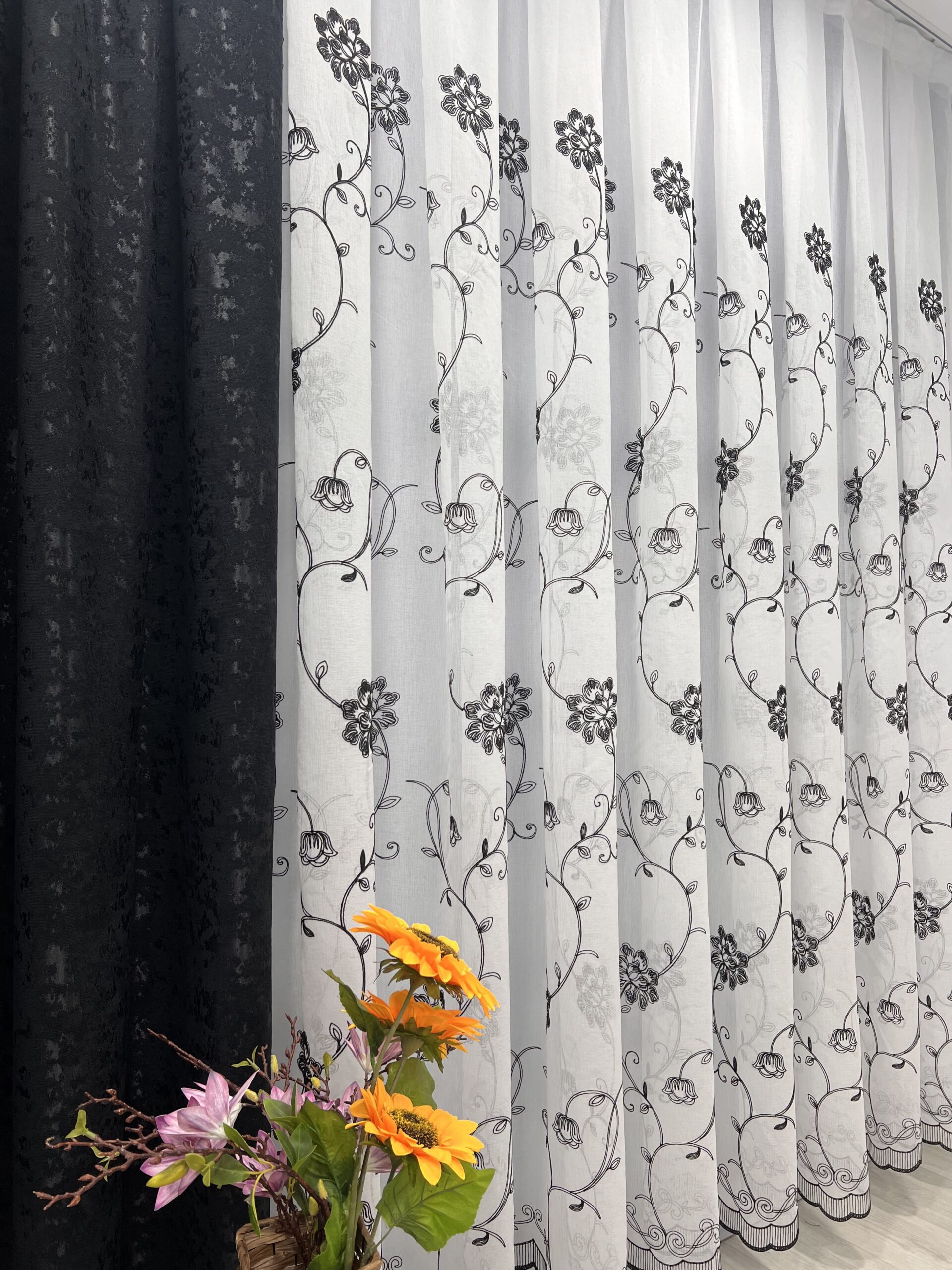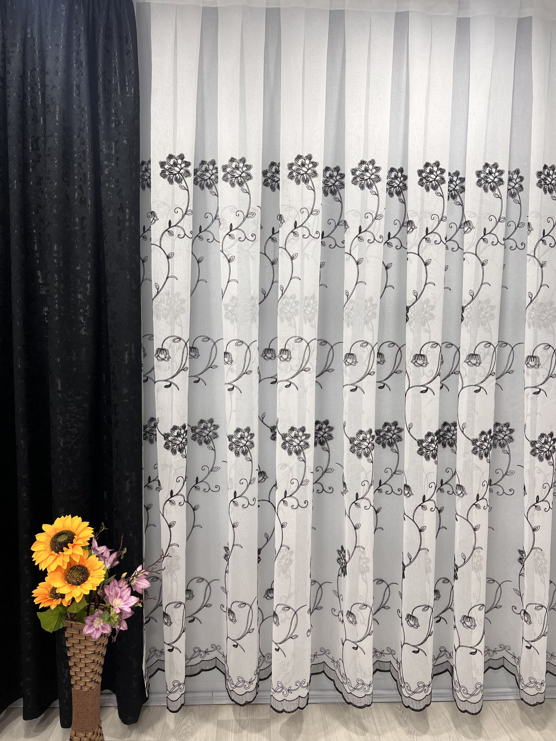 Perdea In cu Brodat Flori Negru cu L5.2m/H2.26m cu Rejansa de 6 cm.