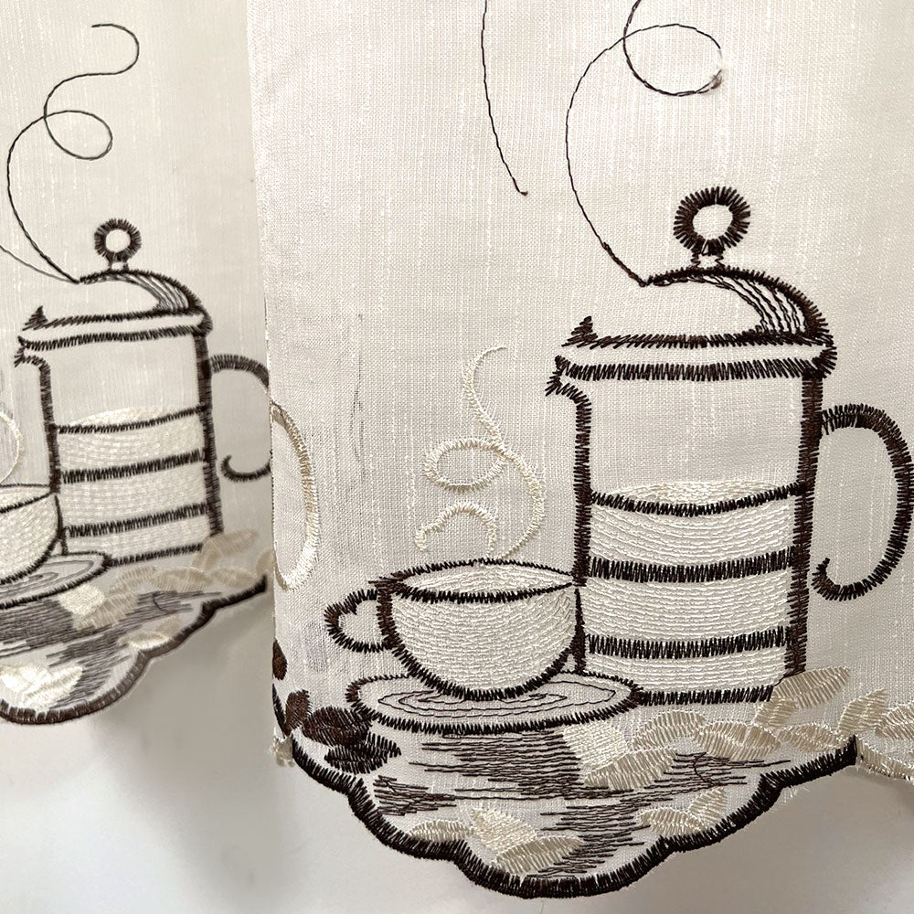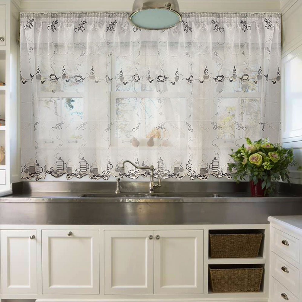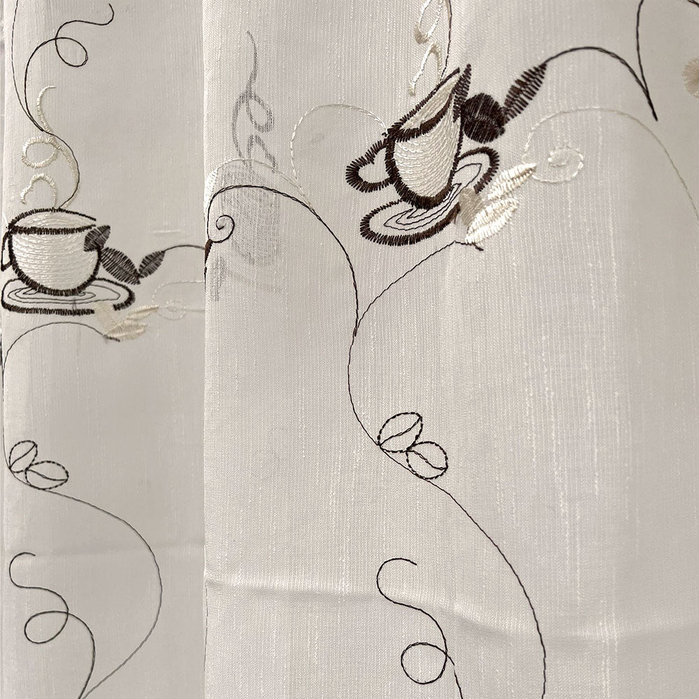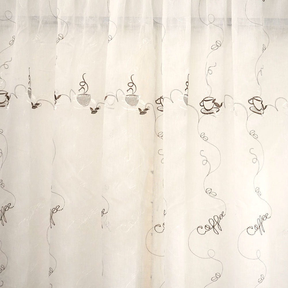 Perdea pentru bucatarie cu model brodat L2.90m/H2m cu rejansa de bara de 8cm.
