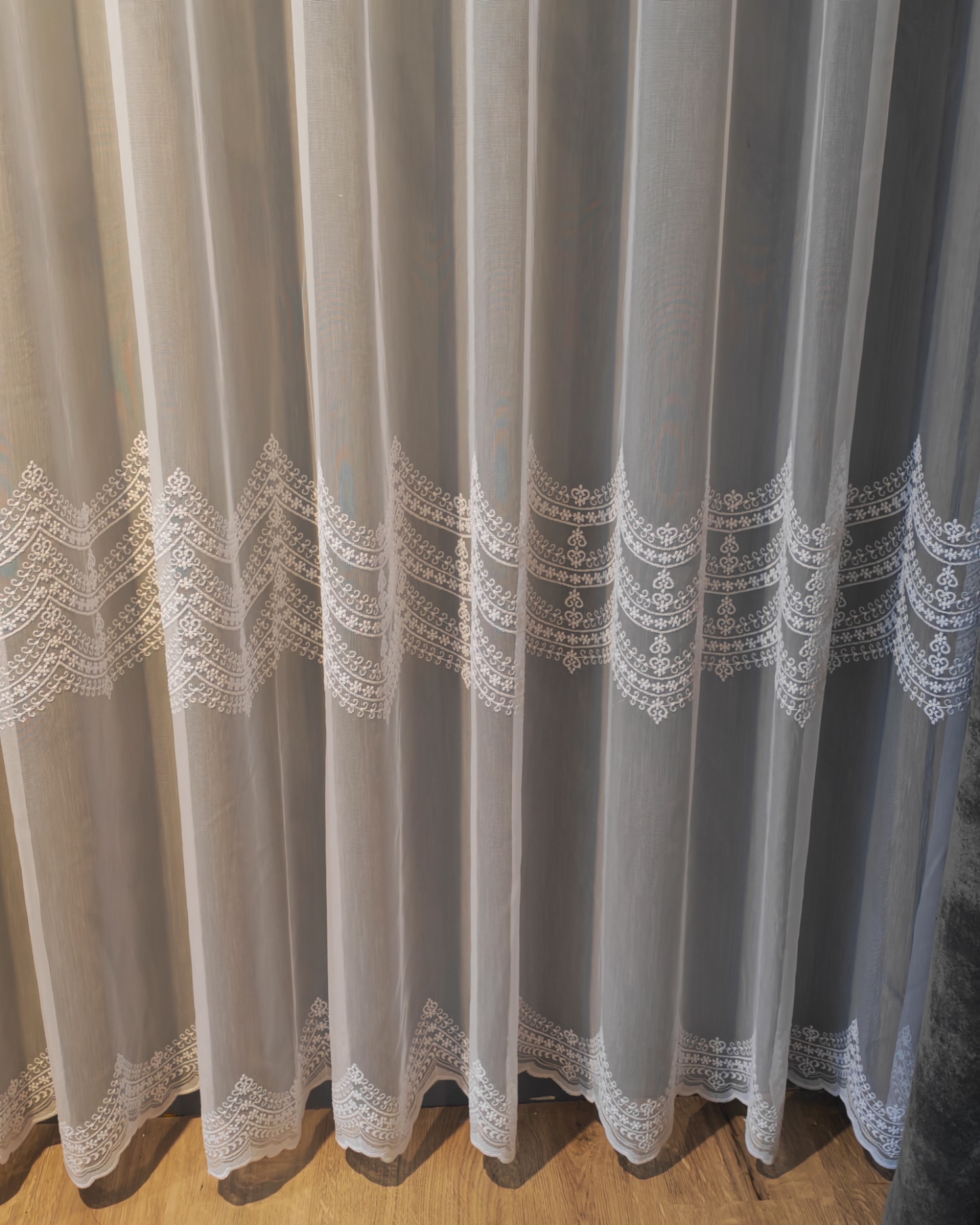 Perdea Aura din Bambus cu Broderie Albă 48109