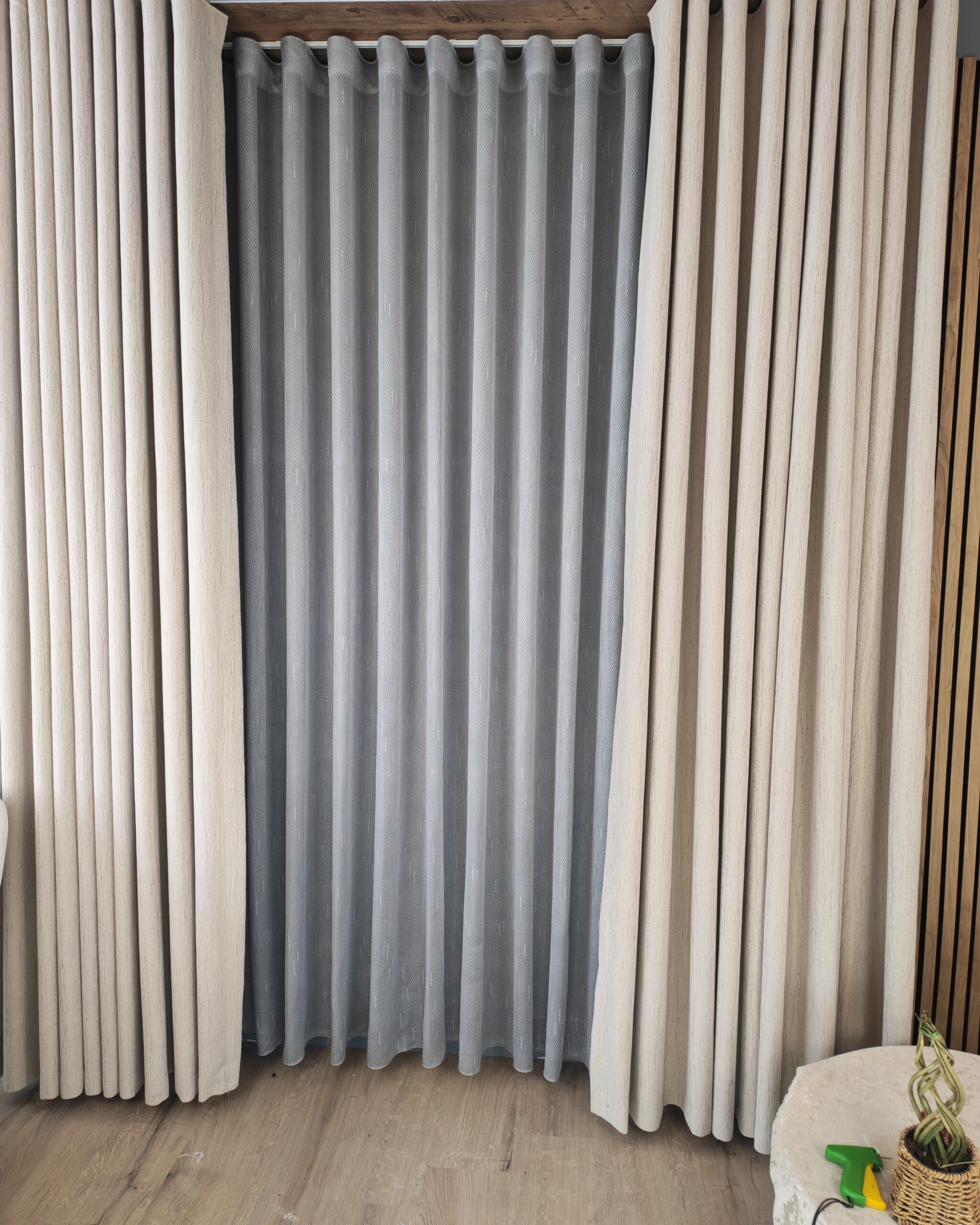Tesatura de tip voal cu textura de in permite luminii naturale sa intre in interior, pentru un efect stralucitor si incantator. Perdeaua va da senzatia unei incaperi mai inalte, daca se opteaza pentru o lungime pana la nivelul podelei.