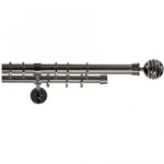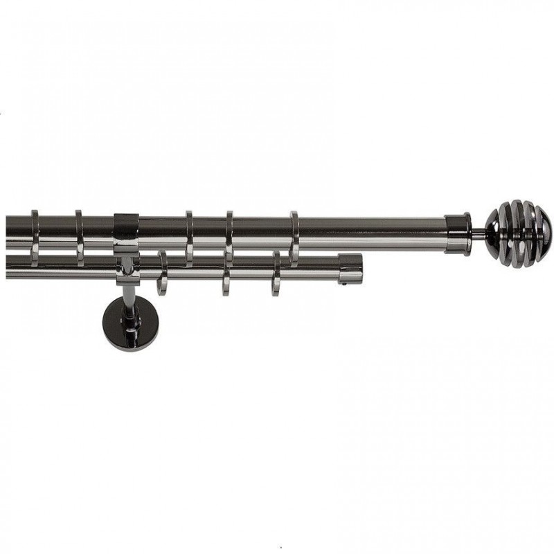 Saturn – Set complet galerie metalica dubla, culoare Onix, diametrul primei tevi 25 mm, cea din spate 19mm, inele teflonate cu carlige pvc.