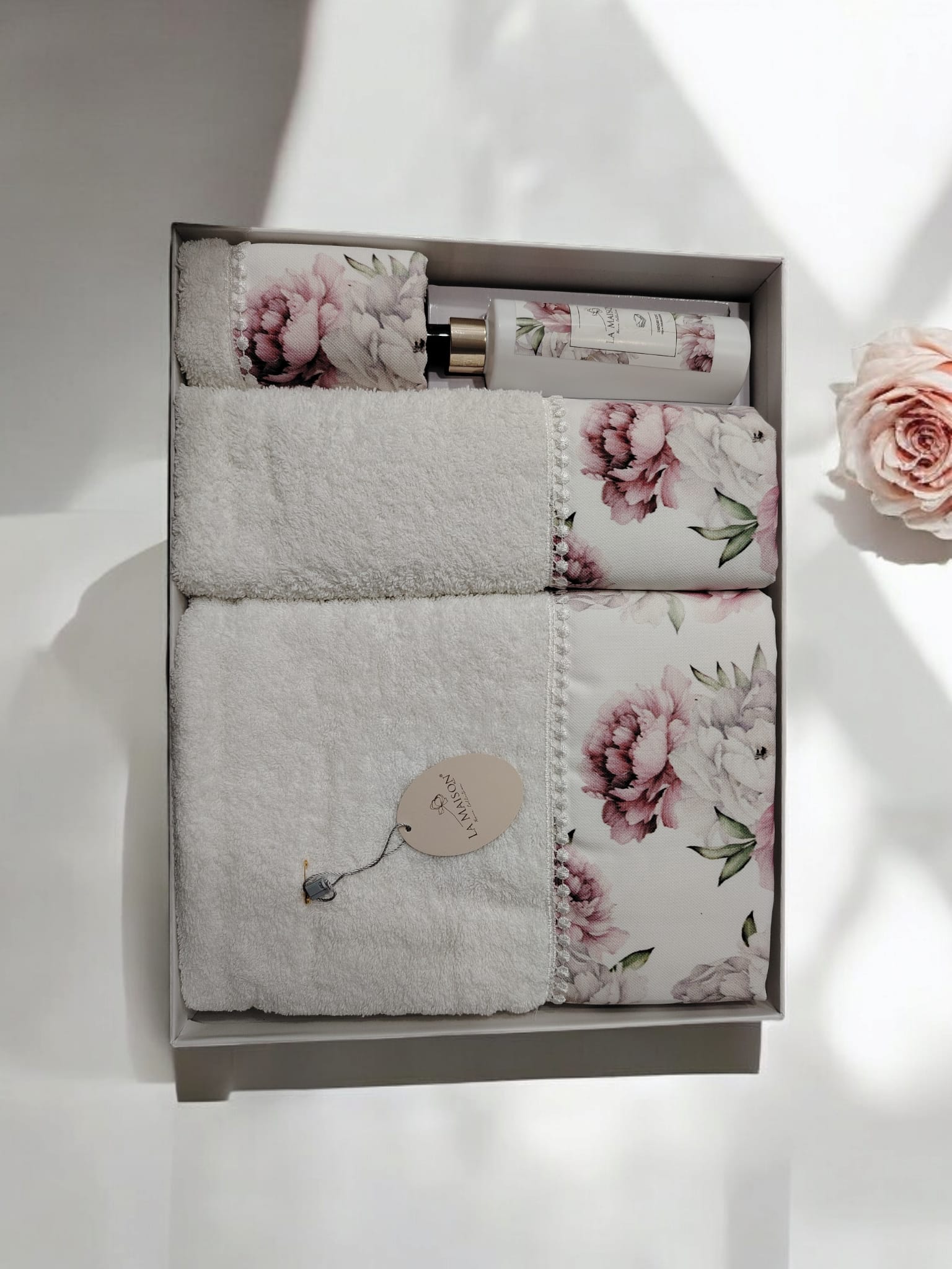 Set de prosoape 3 buc Model Floral ( 1 buc 30/50 , 1 buc 50/90 , 1 buc 70/140 + 1 spray)