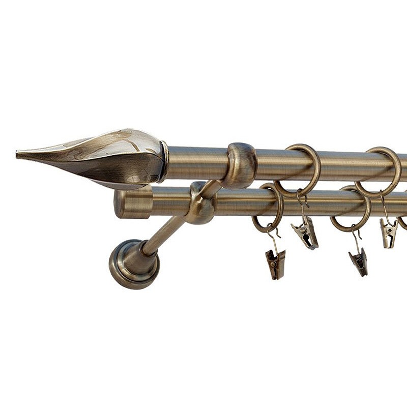Twister – Set complet galerie metalica dubla, culoare Aur Antic, diametrul ambelor tevi 19mm, inele teflonate cu carlige pvc.
